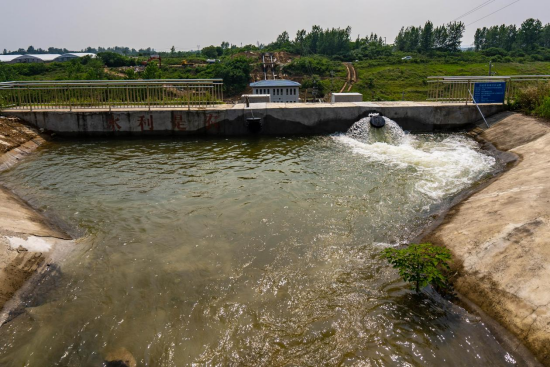灌区项目改造后的长堰电灌东站抽水抗旱