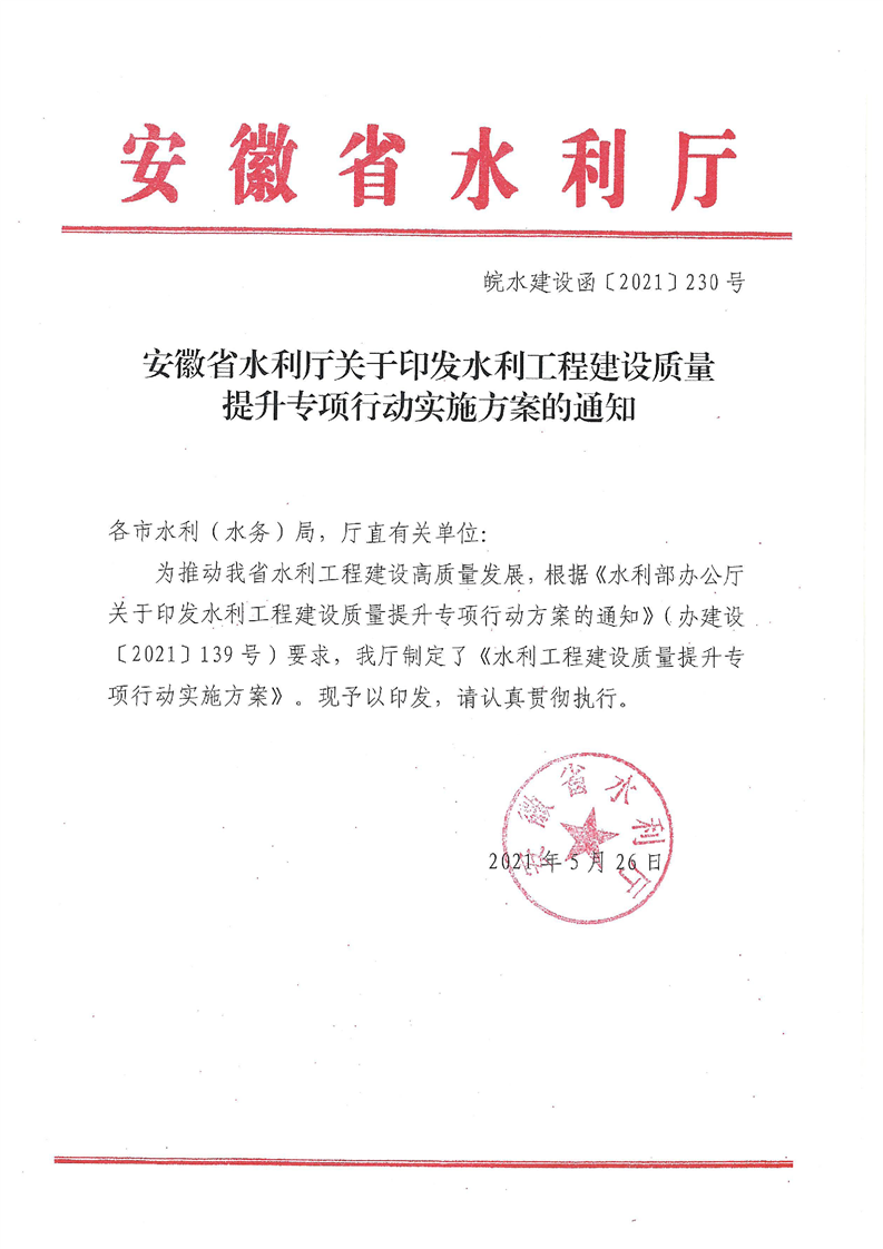 安徽省水利厅关于印发水利工程建设质量提升专项行动实施方案的通知