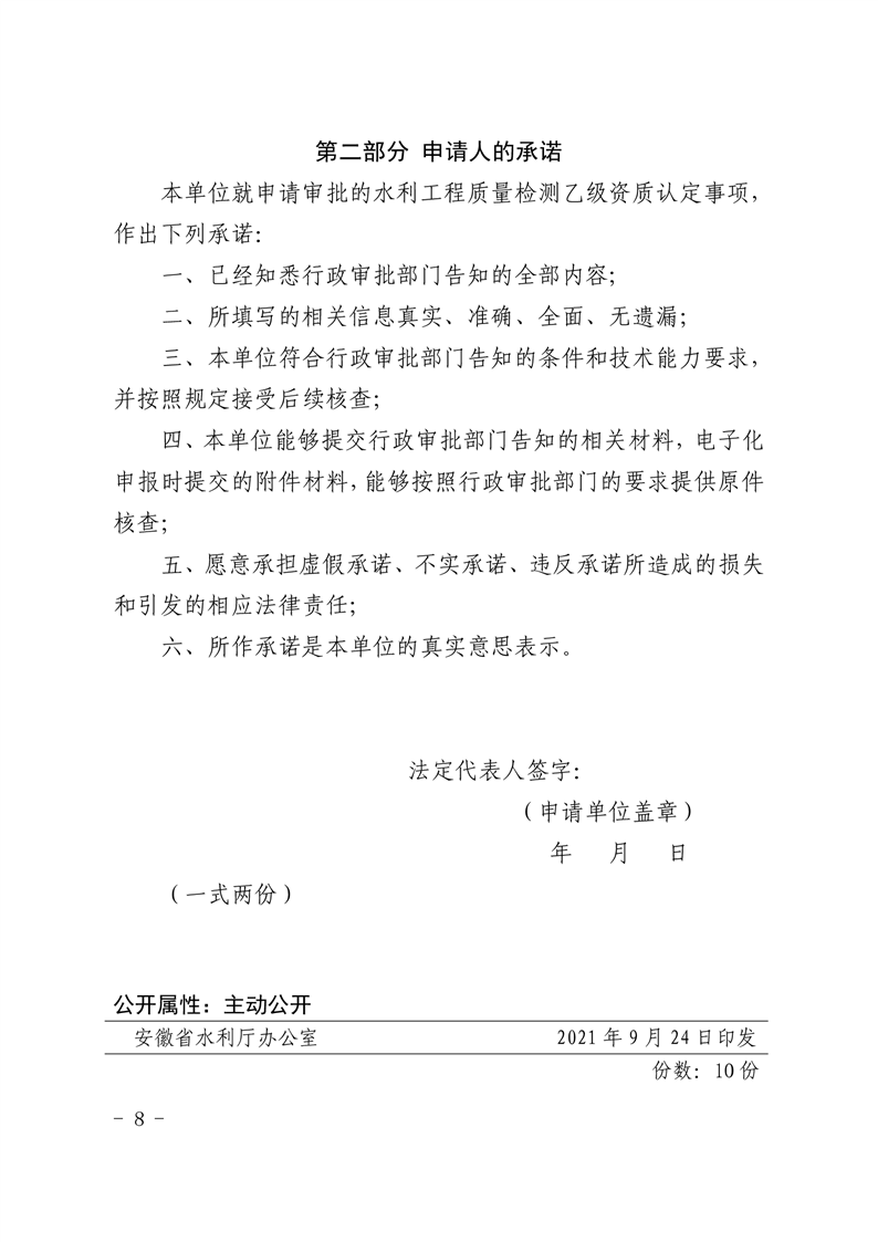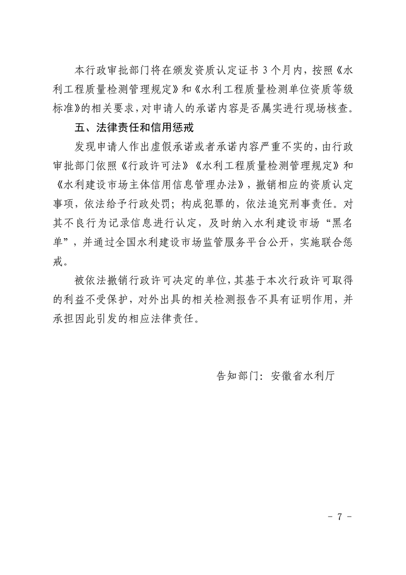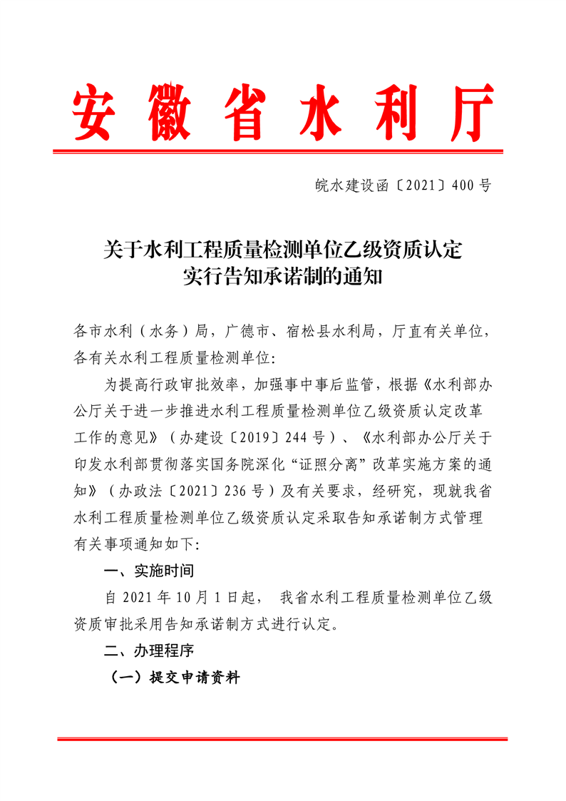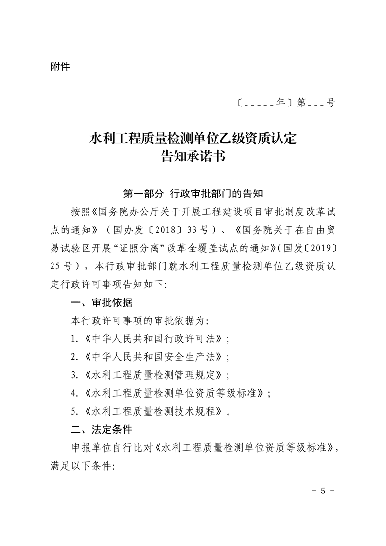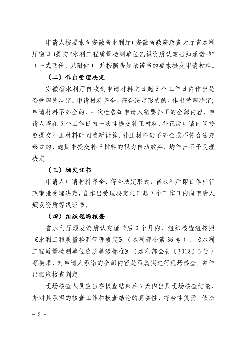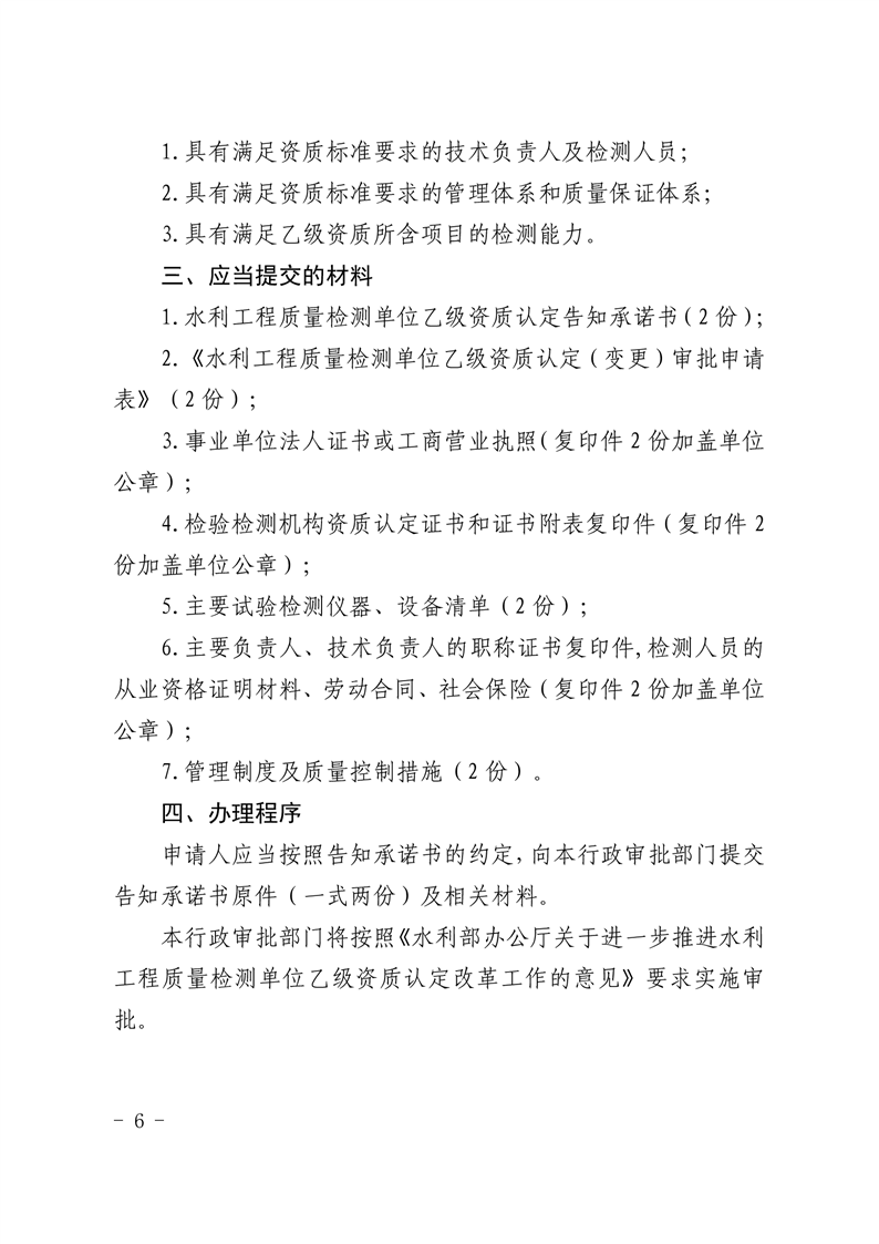 关于水利工程质量检测单位乙级资质认定实行告知承诺制的通知