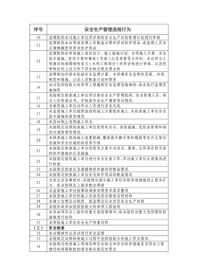关于印发水利工程建设安全生产监督检查问题清单(2021年版)的通知